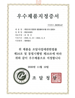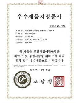 • Excellent product certification by Public Procurement Service for confirmation 2020141