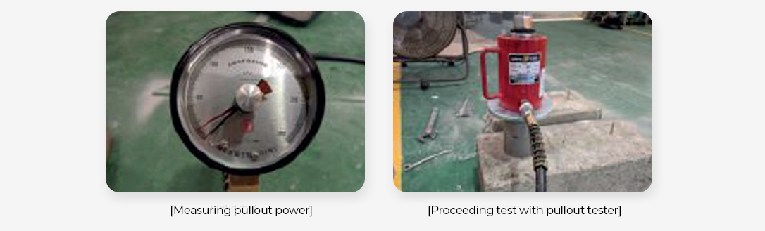 Pullout load comparison test between normal chemical anchor and the anchor construction where patented technology has been applied