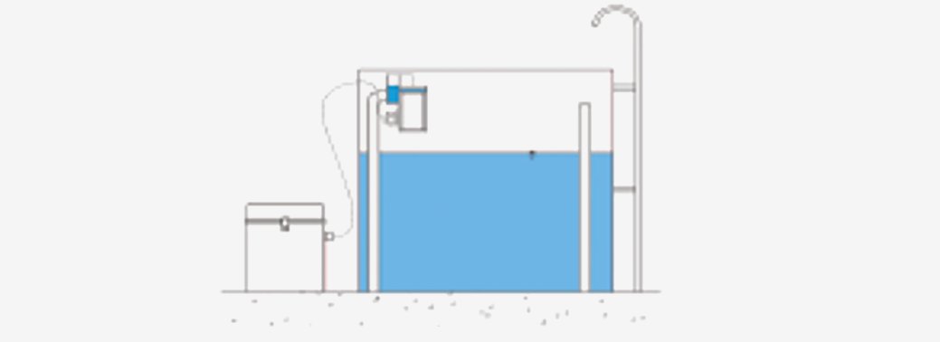 The technology for the correct quantity of water flow distribution that has been through the first and second phases is that 650 liters of water comes into the first round of water turbine tank, which consists of three tanks and regardless of the inflow rate, 1.0 mg of liquid chlorine is injected through a medical tube pump.